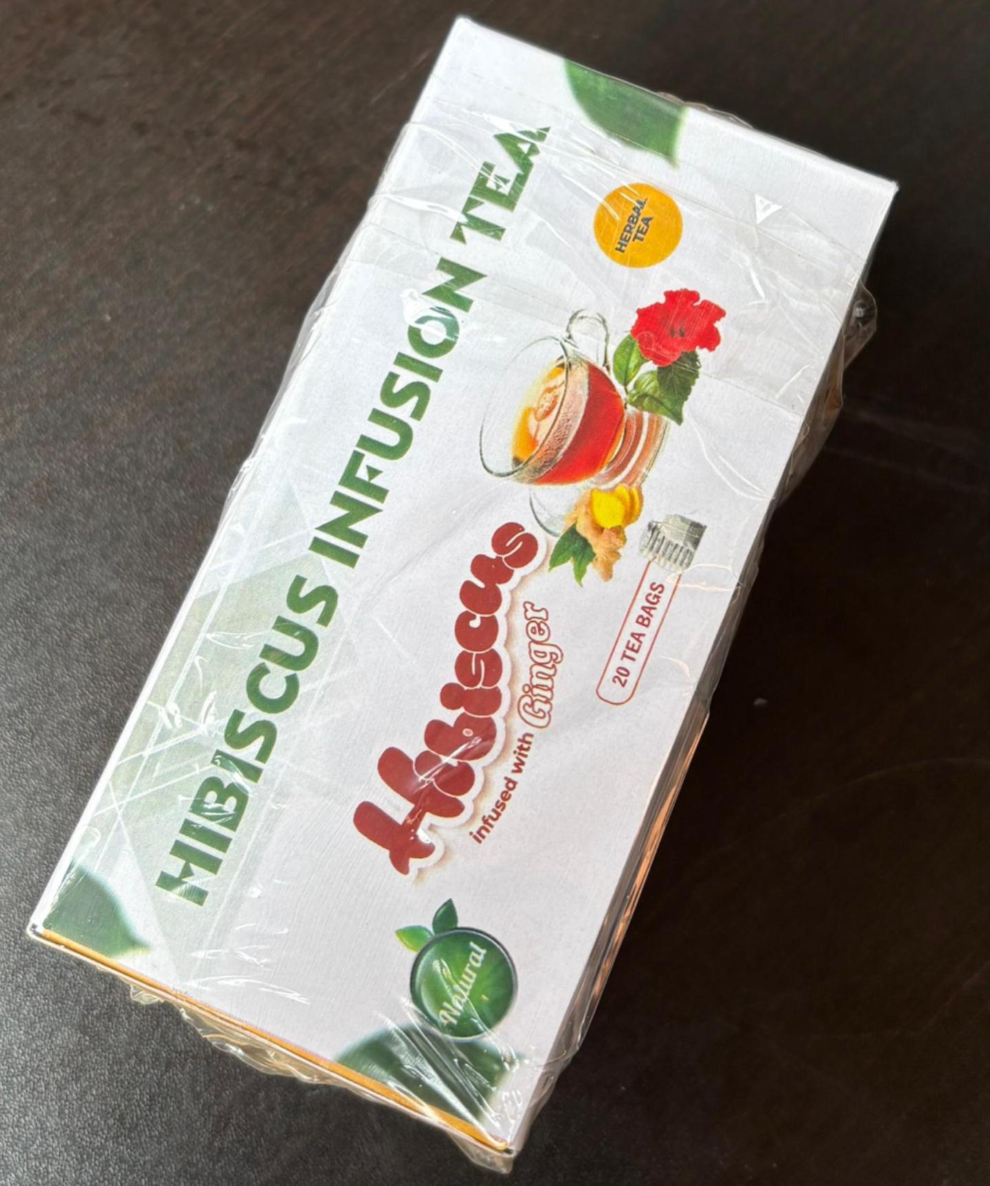 Hibiscus tea comes in Pure Hibiscus, Hibiscus+cinnamon and Hibiscus + Ginger spice